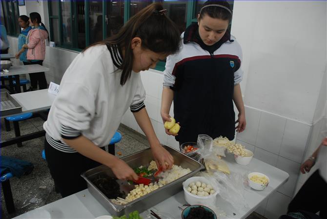 2月12日晚上6:00时,我校新疆部同学在食堂举行了厨艺大赛。