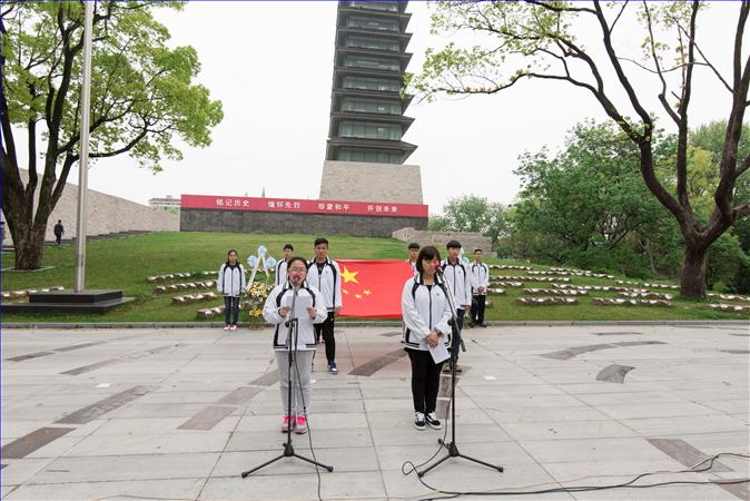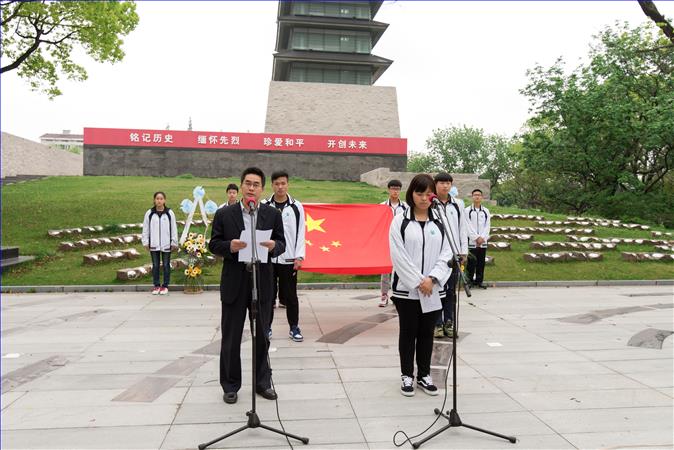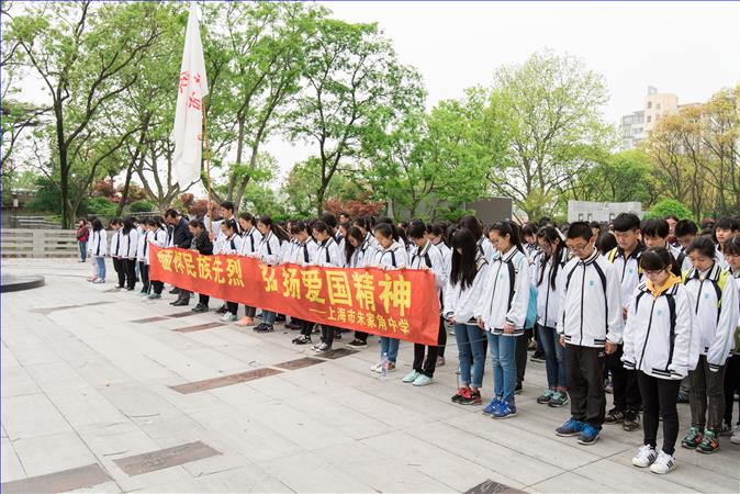 4月24日,暖暖的春风中,我校高二全体学生在淞沪抗战纪念馆举行了隆重的爱国主义主题教育活动。