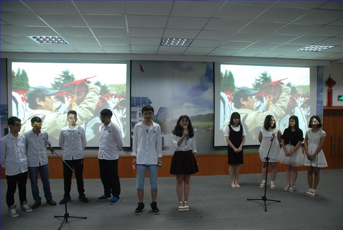 随后,高三13班班长乌英和高三14班班长印辉,向大家分享了在我校学生生活的往事,表达出他们对母校、老师的感激之情,发出“培育之恩,永生难忘”的真情。