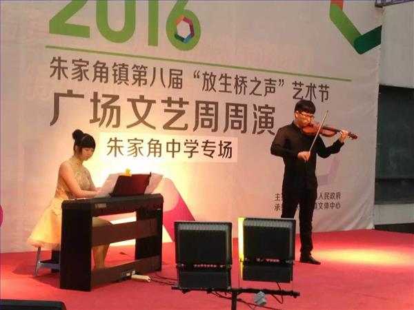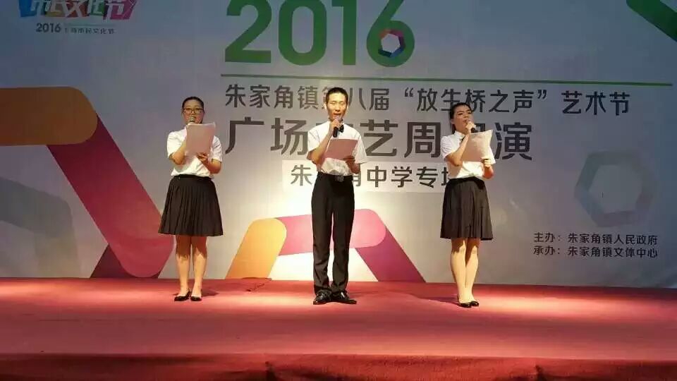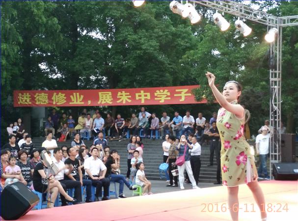我校开展“两学一做” 党员学习教育活动以来,积极拓宽学校的办学思路,努力为朱中学子搭建教育实践平台, 向社区展示朱中学子的靓丽风采。6月11日晚上,由朱家角镇政府主办,朱家角镇文体中心和上海市朱家角中学承办的“青春韵律七彩校园”进社区演出在古镇银杏树广场举行,吸引社区数百名群众观看了演出。为了这次演出活动,艺术组的全体老师付出了大量的心血,同学们也积极参与排练,大家把这次演出活动看成是向社区人民的一次献礼。演出活动既丰富了社区居民精神生活,也加强了学校与社区的互动联谊。校长蒋伟勇、书记吴东林以及行政班子部分成员观摩了此次演出活动。