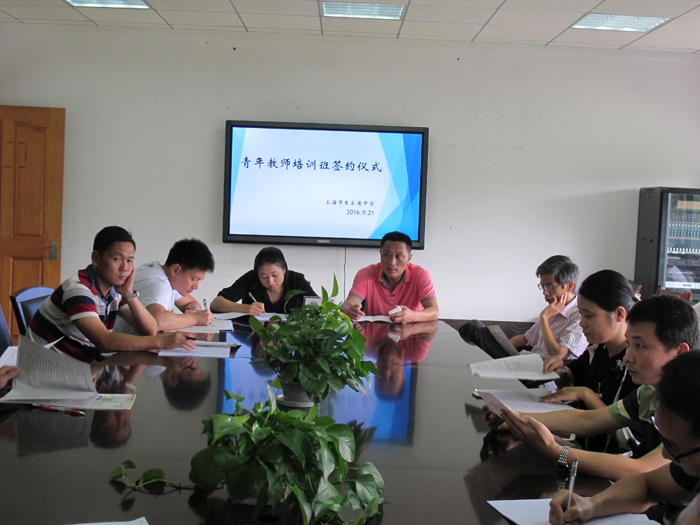 2016年9月21日中午12:30分,我校青年教师培训班的签约仪式如期举行。签约仪式由谢建妹老师主持。蒋伟勇校长出席并作讲话。
