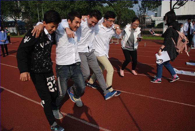 11月4日下午,上海外国语大学经贸学院第49期二十余名党员发展对象在辅导员王瓅苑老师带领下来我校新疆部开展教育实践活动。 经贸学院四川籍彝族学生万瀚锶和云南籍纳西族学生李元兰分别到预高两个班级开展了以“民族团结•民族魂”为主题的班会活动。她们通过自身的经历现身说法,分享了各自的求学之路和生活经验,帮助同学们排除学习生活中的烦恼。之后,全体同学分为九组,来到操场上与金贸学院的同学们共同参与到精心策划的团队游戏中。民族知识竞赛,知识储备惊人;才艺试听,唱响团结之歌;四人三足,口号响亮;无敌风火轮,步伐整齐……同学们相互鼓励,彼此信任,团结一心,勇往直前。通过六个环节的比拼,每只队伍都展现了各自风采。最后,经贸学院还向全体同学赠送了有上海外国语大学标志的学习用品。 本次实践活动再一次将英语学习融入了团队建设的游戏中,同学们明白了团队协作、包容信任的重要意义,也加深了同学间的情谊。