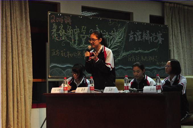 一辩:高一7班,方思佳;二辩,高二7班,周若莞;三辨,高二7班,沈文婷;四辩,高一2班,袁子璇。