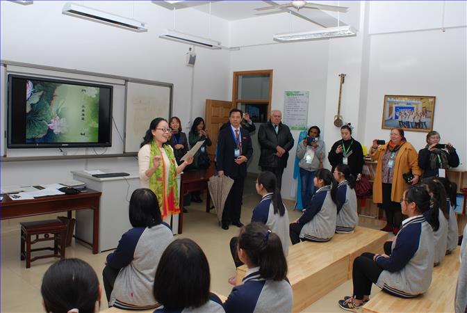 第九届全球健康促进大会11月在上海举行,大会将11月23日设定为“中国国家日”,向来自世界各地的与会者展示中国卫生与健康发展的成效和成就。活动已成议程之一就是组织参会代表及媒体走进上海16个区县的社区、企业、学校,实地参观考察健康促进工作。我校荣幸地成为一个参观点。 11月23日下午4点 ,世卫组织官员和卫生专家在副区长顾骏、区卫计委副主任胡炯、朱家角镇镇长乔惠峰、教育局局长程卫国、副局长高燕等领导的陪同下来到我校进行参观活动。首先,蒋伟勇校长向客人介绍了我校的历史,接着一路带领客人参观了我校学生在体育和艺术方面开展的拓展课程活动。来宾们每到一个活动点,都兴致勃勃地和师生们合影交流和活动体验。最后,校长在210会议室向来宾介绍了我校在促进卫生和健康方面长期所做的工作,并回答了专家提出的有关问题。会后,来宾和学校领导一起留影留念。 这次活动,得到了来宾的一致好评。本次活动的顺利进行是全校师生将近一年共同努力和相互配合的结果。在此,我们尤其要感谢全体医务室、艺术、体育老师和部分作为志愿者的外语教师以及总务处老师辛勤的付出,也感谢积极参与本次活动的同学们。我们希望通过活动,更加努力地推动全校卫生和健康工作,为师生的健康做出更大的贡献。