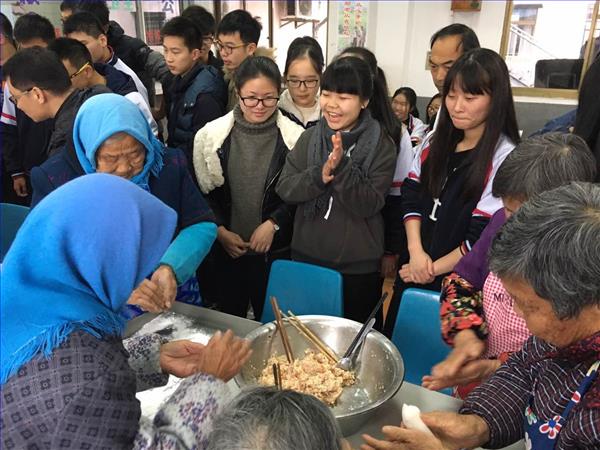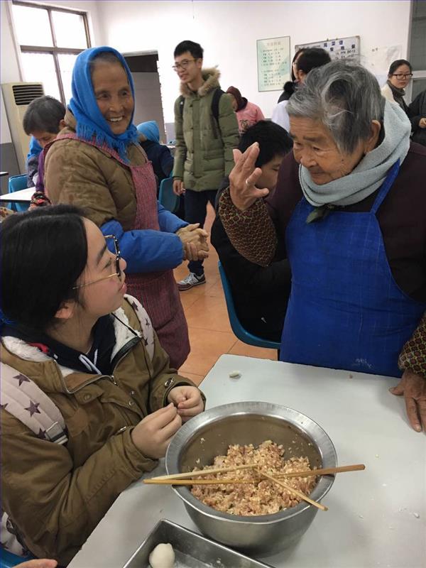 “唐仲英爱心小分队”的队员们也十分热情地奉献着自己的爱心,他们将自己带来的精致的点心作为礼物送到老人手中;然后大家一边询问老人的身体状况,一边与老人一起包汤圆,把煮好的汤圆分发给老人们,让老人切身感受到社会的关爱与温暖。之后,大家都表示今天的活动非常有意义,以后还要经常开展。这是我校唐仲英小分队成员用实际行动践行基金会宗旨:服务社会、奉献爱心、推己及人、薪火相传。