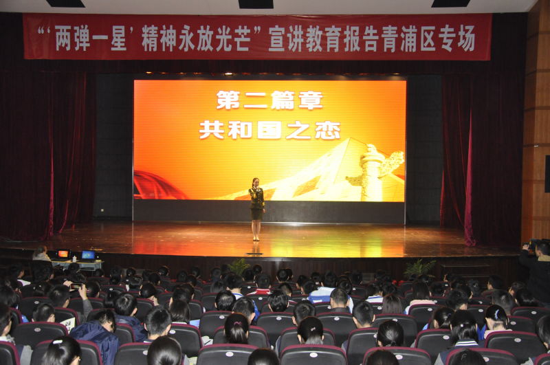 3月11日上午,在上海援青联络组的牵头下,由区委组织部承办,团区委和区教育局联合承办的“‘两弹一星’精神永放光芒”宣讲教育报告青浦区专场在上海市朱家角中学举行,来自全区各高中、中职校的近600名共青团员和入团积极分子观摩了活动。此次主题宣讲活动也是团区委和教育局践行“学习总书记讲话,做合格共青团员”教育实践活动的一次集中性学习。