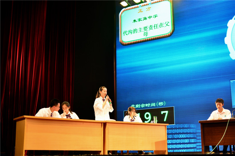 本次辩论赛围绕“代沟的主要责任在于父母还是孩子”展开。我校春晖辩论队作为正方,主张“代沟的主要责任在于父母”;松江二中辩论队作为反方,认为“代沟的主要责任在于孩子”。在辩论过程中,正反双方不约而同地把辩题中“代沟”的范围,主要集中在“成年父母与青春期子女之间的代沟”。