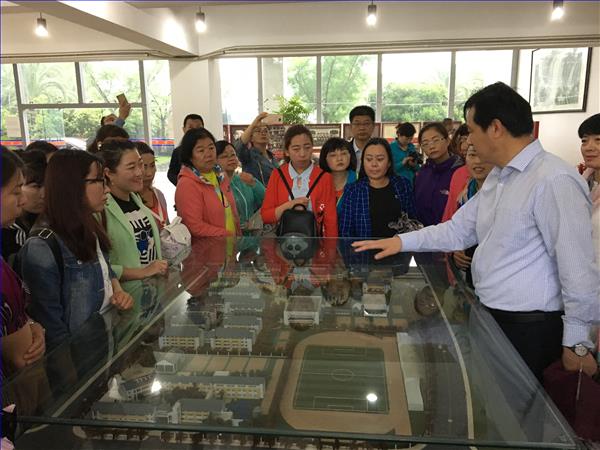 5月12日,第七批自治区优秀教师代表一行40余人在自治区教育厅刘美燕副主任带领下来我校参观考察。学校校长蒋伟勇、党支部副书记兼新疆部分管领导谢建妹陪同视察。