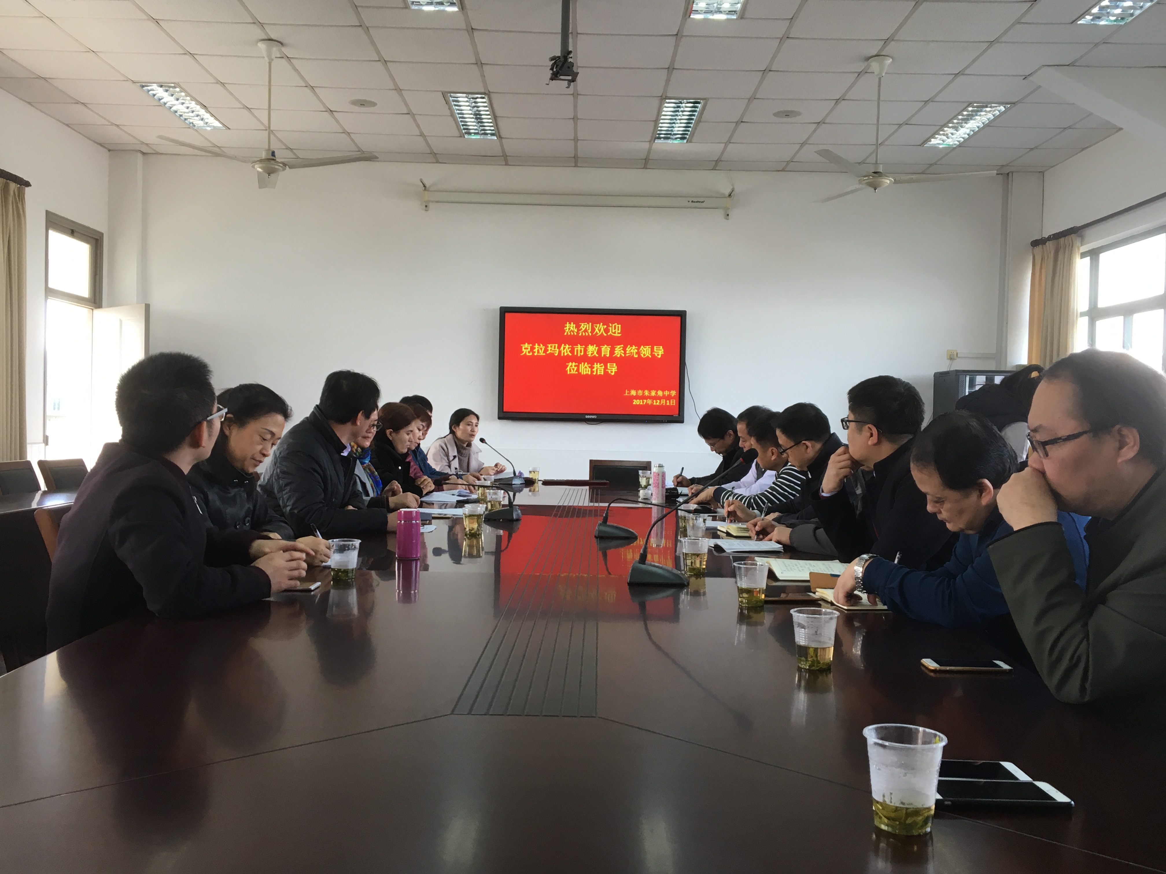 12月1日,克拉玛依教育考察团一行11人在克拉玛依市教育局普教科赵远新科长带领下来我校调研克拉玛依内初班毕业生思想政治状况。我校校长蒋伟勇老师、党支部副书记兼新疆部分管领导谢建妹老师等校领导陪同调研。