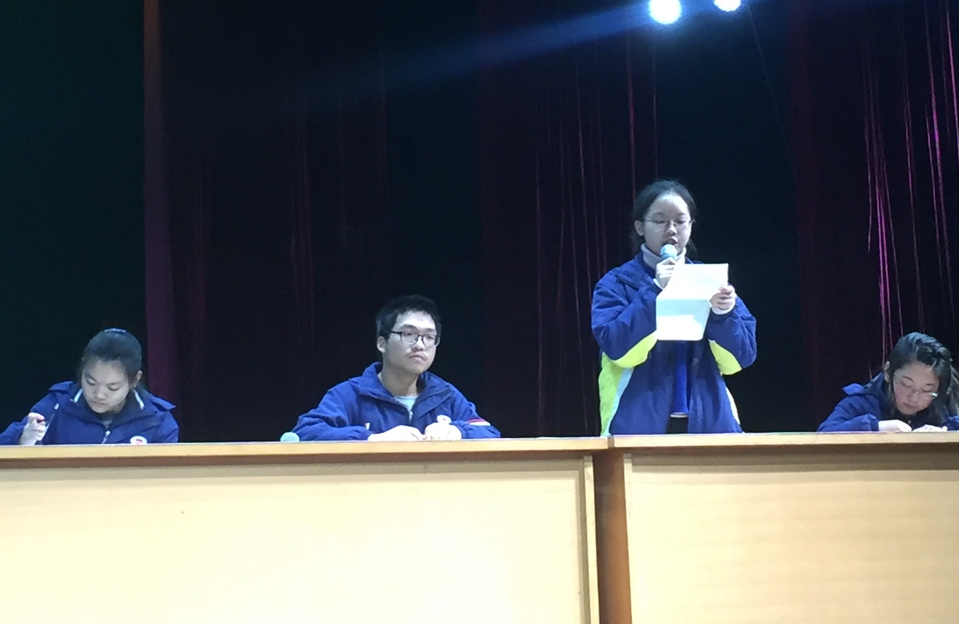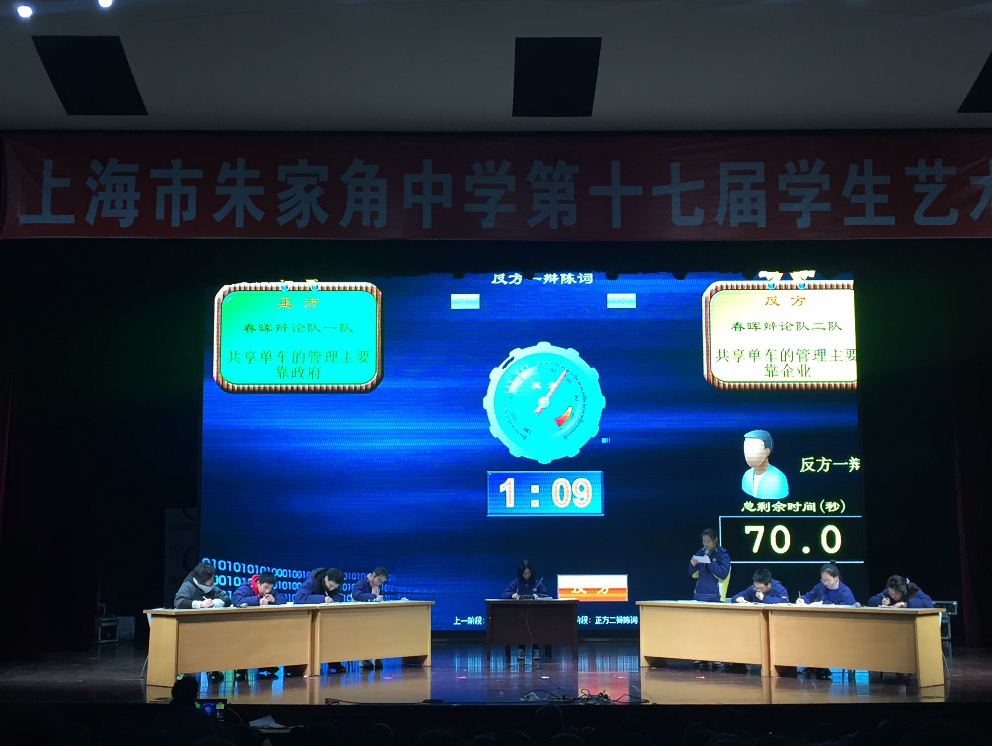 一队队员:一辩 高一12班 钱怡婷 二辩 高二6班 孔德圣 三辩 高一5班 沈达智 四辩 高一4班 符彤彤