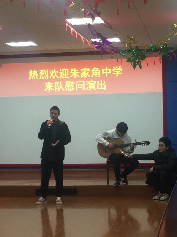 朱家角消防中队范队长对大家的到来表示欢迎并祝大家新年快乐,表示朱家角消防中队将继续关心、支持我校的消防安全与宣传工作,配合学校做好学生社会实践的各项活动。慰问活动中我校学生为消防官兵送上了舞蹈、相声等文艺节目,特别是高一13班孙太宇同学的激情红歌《渴望光荣》更是表达了对消防战士的赞扬之情。消防队官兵们表演的相声和小品让台下的观众不禁捧腹大笑,给新年增添了一份喜悦。