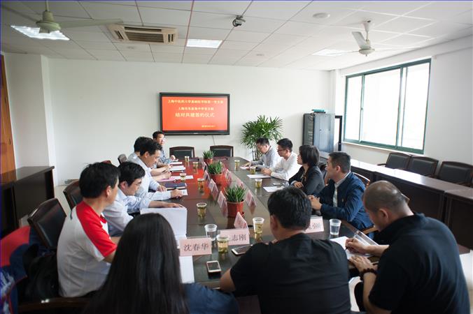 签约仪式上,教育局党委副书记黄海忠就我校的办学特色、青浦教育发展以及青浦的风土人情向来访者进行了介绍,肯定了这项支部结对共建党建工作;基础医学院党委副书记郭峰讲到,通过上次的接触商谈,感觉双方在许多方面达成了共识,虽然是支部共建,但还可以有很多的合作空间,特别在民族学生培养共进,课程建设互助方面可以加强合作;朱家角中学校长蒋伟勇说到我校热切期盼得到大学高端资源的辐射帮助,特别在我校“课植园”中医药科创实验室建设和相应的课程建设中得到基础医学院的指导和帮助。