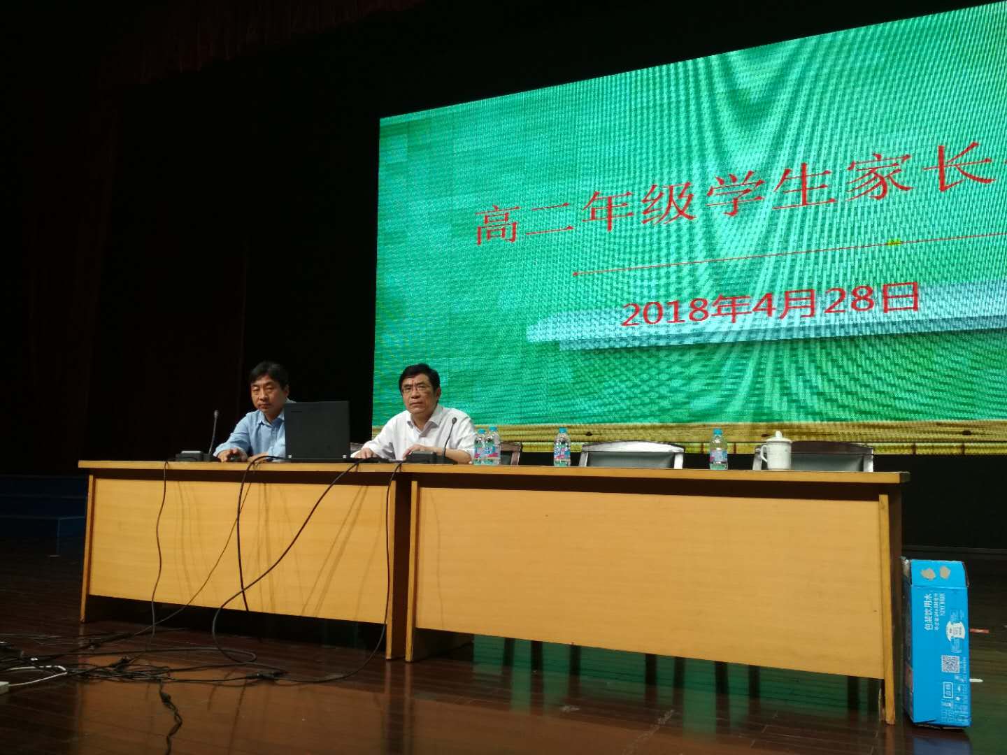 4月28日,在距离高二学生等级老师还有一周的时间,我校高二年级举行了家长会,家长会由王志刚老师主持,王校长做了家庭教育方面的讲座。