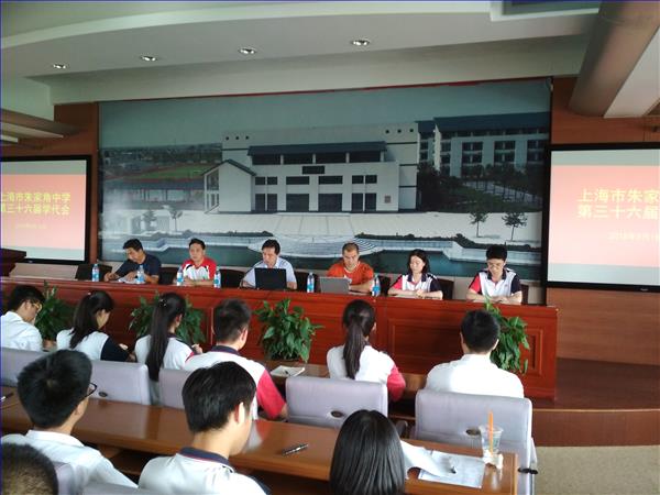 5月18日中午,在庄严的国歌声中,上海市朱家角中学第三十六届学生代表大会在春韵楼406会议室召开,校长蒋伟勇、政教主任吴炳云,政教副主任王志刚、团委书记魏强等出席了本次大会。来自全校各年级的学生代表共计220余人参加了会议。