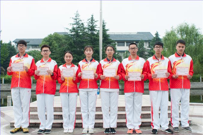 新一届护旗队队员:高一1班陈逸杰、高一3班孙昊、高一4班吴昊、高一9班李思衍、高一11班谢成旭、高一12班钱淑颖、高一13班章搏腾、高一14班李芝艺。
