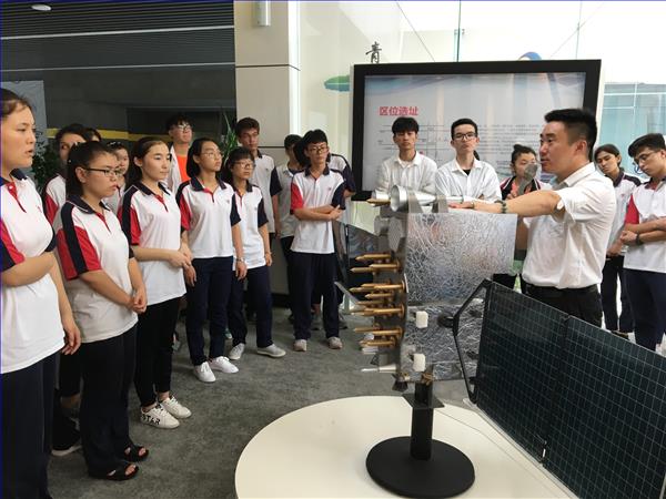 首先北斗产业基地华测导航总裁、青浦区少数民族联合会副会长朴东国先生代表产业园对大家表示欢迎,并向大家简要介绍了产业园的运作情况。随后,大家在基地科普讲解员刘健先生带领下参观了园区的产品展览,在新一代北斗导航卫星模型前,基地科普讲解员刘健先生向大家详细介绍了目前我国北斗导航产业的发展情况,并通过近期的叙利亚战争和中兴芯片事件,阐述了拥有自主研发的科技成果的重要性,对于较复杂的专业仪器,刘健讲解员用简单幽默的语句来解释这些“活宝”,例如北斗智能车载终端、船载定位终端、心脏监测定位设备和迷你无人机……同学们听得津津有味。