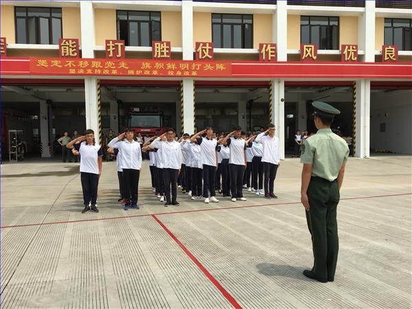 29日上午,同学们走进朱家角消防中队,参观了教官内务、体验了如何使用消防器材。最后进行了会操,向全体官兵展示了这阶段的军训成果,同学们整齐划一的步伐,昂首挺胸的姿态得到了全体官兵的一致好评。
