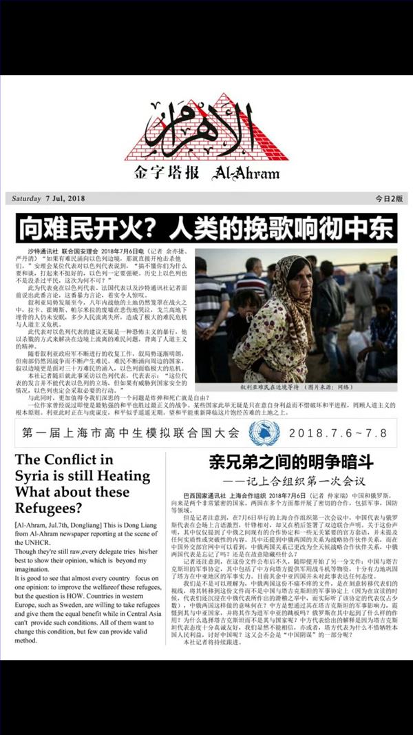 MPC主新闻中心--高二二班的马贝戈和严丹清担任金字塔报和沙特通讯社的记者。