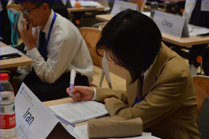 UNHCR联合国难民事务高级专员公署--高二五班 吕晓峰同学担任本次会议中的厄立特里亚代表。