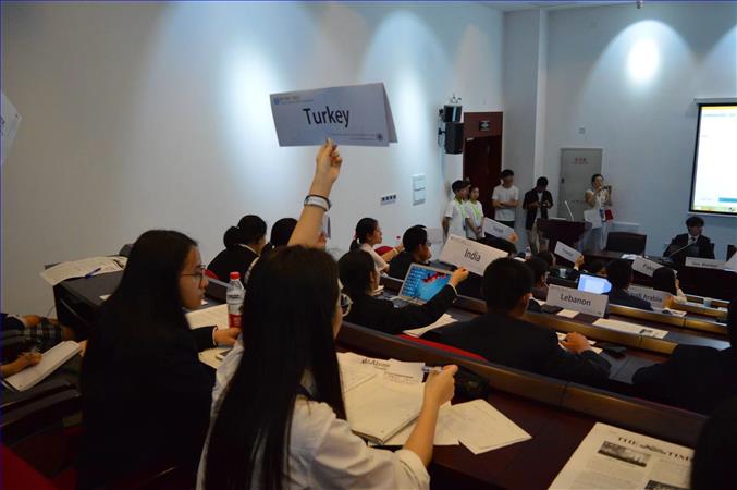 大会主题为“青年视界——世界区域安全问题”,历时三天。本届模拟联合国大会共设立六个委员会,分别为SCO上海合作组织、UNSC联合国安全理事会、CH英国下议院、UNHCR联合国难民事务高级专员公署、GA3联合国大会第三委员会、MPC主新闻中心。我们聚焦在叙利亚局势、中东和平进程中的英国政策、Protection andDevelopment of Childrens rights and interests in conflict area,European refugee crisis under globalization等议题展开议会讨论。