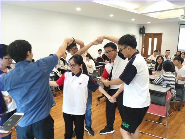 清晨 ,朱家角中学的爱心小分队和学生会主席团成员一起来到了美丽的交大校园,与热情洋溢的晨曦社学长学姐们汇合。开幕仪式上晨曦社社长向同学们介绍晨曦社参加公益和志愿者活动的经验以及他们服务社会、奉献他人的故事。之后,由晨曦社成员组织开展了传娃娃、解手锁、制作队旗等一系列的趣味游戏,让学生之间彼此熟悉,增进友谊。