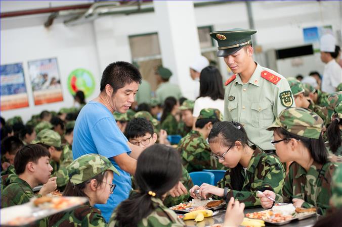 范双总教官要求同学们要不怕苦、不怕累、不怕烈日、不怕汗水,一切行动听指挥,和教官形成默契。