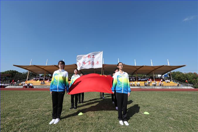 入场式后,在庄严的国歌声中,五星红旗在操场东面的旗杆上冉冉升起。接着,吴东林书记致开幕词,他高度赞扬了学生们在入场式中表现出来的创造力和蓬勃朝气,祝愿学校再创新高并预祝运动会圆满成功。之后,运动员代表在全体师生面前庄严宣誓:遵守规则、尊重对手,公平竞技、展示风采,友谊第一、比赛第二。