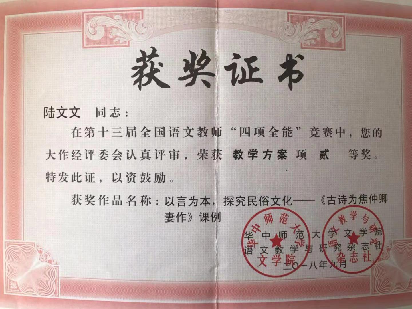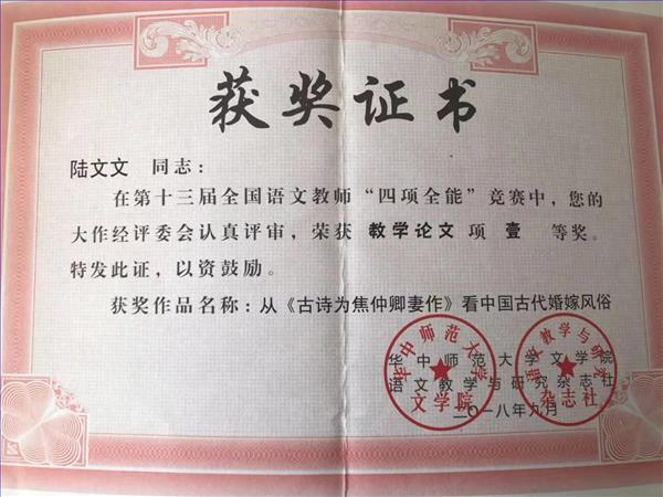 【语文组】区级作文竞赛、古诗文竞赛获奖喜报