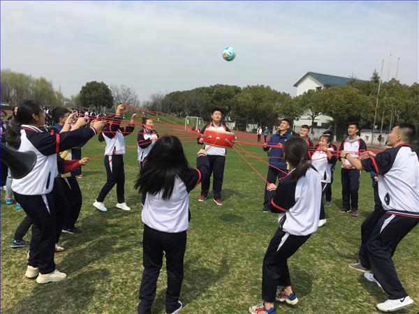 活动由水到渠成、硫酸河、鼓动人心、疯狂扑克等诸多小型游戏组成。在游戏“水到渠成”中,同学们互相配合,相互打气,一起团结协作完成了游戏;而在游戏“硫酸河”中,同学们集思广益,设法在最省力省时的情况下成功过河;最考验大家的是 “鼓动人心”,游戏中所有队员每人用一根绳子拉住鼓,以鼓为中心围圆,所有队员抓住绳子保持鼓面平衡,用鼓面去弹一个球,这就要求团队成员高度配合,只有所有成员手脚同步并在同一个节拍才能顺利完成任务。