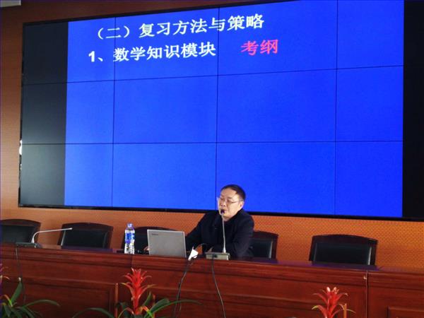 讲座环节,首先倪老师简单介绍了数学特级教师阮晓明老师,随后全体听课教师在春韵楼四楼聆听阮老师的讲座,他指出:1.高三第二轮复习要形成知识网络,强化主干知识,提高综合应用能力,掌握通性通法,总结规律,模拟高考情景,提高应试技巧。2.复习以模块为主,专题复习,深化提高。3.关注三个要点:薄弱点,重点,热点。做到四个转变:以质取胜,突出高考主干知识。最后阮老师列举了近几年的春考,秋考的高考试题,更加的生动形象。