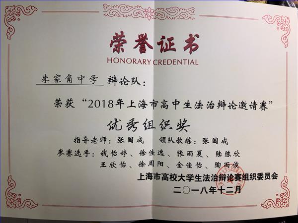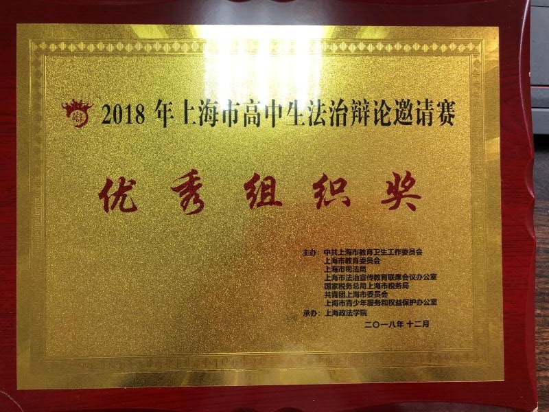 学校春晖辩论社连续第三年应邀参加“上海市高中生法治辩论邀请赛”,并获得组委会表彰!