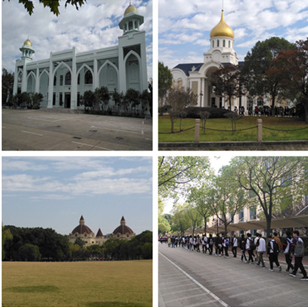 主题报告结束后,同学们在上外学生志愿者的带领下参观大学校园。恰逢上海外国语大学70周年华诞之际,上外校园装扮一新,处处洋溢着生机和活力,一幢幢体现着不同国家的建筑风格的教学楼,寓意着不同国家的文化,每位同学的心灵都受到感染,同学们感受着上外独具特色的校园文化。