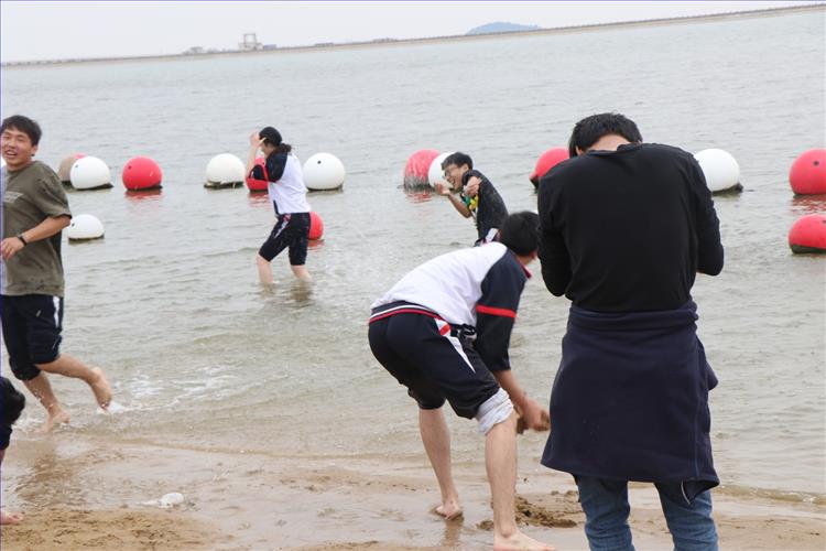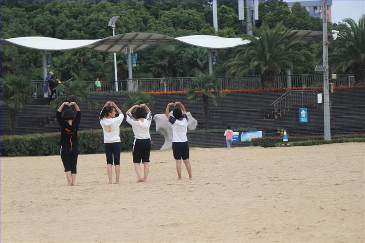人工铺设的金色细沙与清澈的海水相映成趣,同学们测了海水的PH值,感受生物的多样性。然后光着脚丫,踩在松软的沙滩上,一起玩转沙子堆,围坐在沙滩上,跳舞、游戏,欣赏城市沙滩的美丽风光。大家又手拉手一起追逐奔跑的浪花,欢笑嬉戏。海滩边充满了同学欢乐的欢笑声,在游乐区,同学们荡着秋千,唱着歌,仿佛回到了童年。