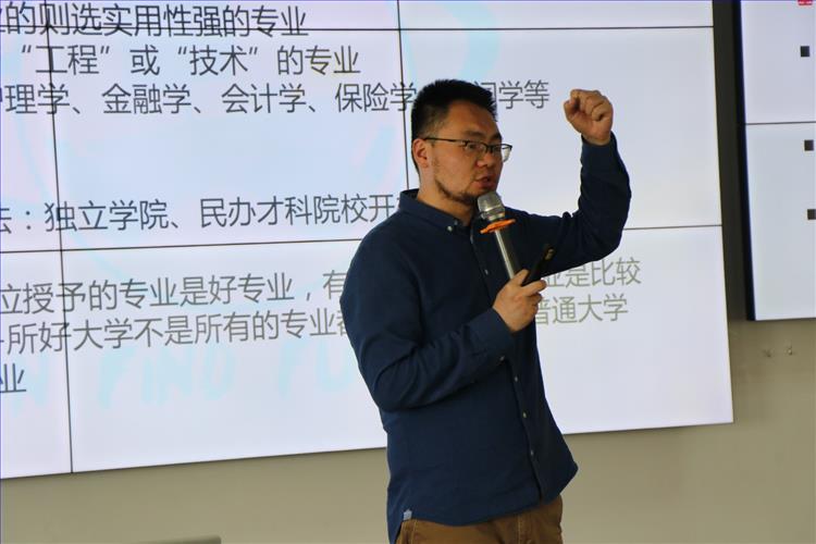 许老师首先介绍了我国大学的概况、大学的分类,然后重点介绍了985和211大学,还有我国目前要建设“双一流大学”的国家战略。告诉同学们选择大学的原则是,看这个学校的校园环境、学校氛围、教学设备、师资资源、地理位置以及校友资源。第二步,介绍我国大学专业的概况和内涵,然后告诉大家,了解专业不能仅仅从名称上去推测,而是要通过可靠的途径去多方面探索。科学选择专业的方法是,要考虑你自己的个性特点、考察高校的实力、了解这个专业的就业前景。许老师还特别强调,选择大学和专业,非常重要的一点不能忽略,那就是你首先一定要明确自己的志向,你将来是要准备回疆还是出国深造,是要参加工作还是考研或考公务员等等。