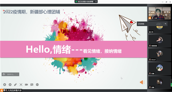 今年的心理健康月已拉开序幕,疫情之下,新疆部学子仍然在校,为帮助学生平稳度过特殊时期、平和接纳期间产生的一切情绪,我校于4月10日开展面向新疆部学生的线上团体辅导“Hello,情绪”,由校心理辅导中心——憩心角里陈海侠老师带领。