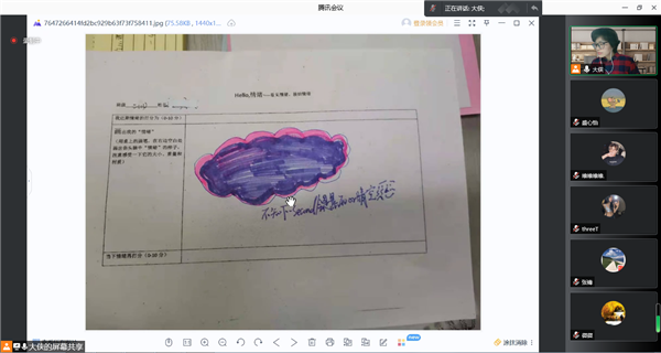 整个辅导过程,为让学生更快进入状态,陈老师做了大量的自我暴露,真诚地将自己的情绪感受、居家状态、感受到的小温暖和大家分享,带动了同学们的参与度,团辅的温馨感倍增。
