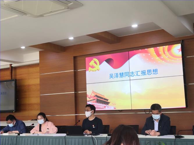 首先由预备党员吴泽慧同志汇报了一年预备期内具体的思想、学习情况并宣读《预备党员转正申请书》。她围绕理论知识的学习、合格党员的标准、实践过程中的反思、自身的表现等内容展开汇报,表示渴望进一步向党组织靠拢。