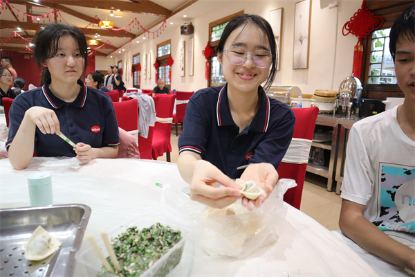 今天的研学让我深刻感受到了江南水乡灿烂的传统文化。参观三民文化村,感受了陶行知先生所提出的“德智体美劳全面发展”,滚铁环,踩高跷,再次感受到了童年的快乐。气势磅礴的舞龙对上柔和细腻的织布工艺,别有一番风情。菜园子的劳动,丰富多彩,有滋有味,吃着自己亲手包的馄饨,有滋有味。余今至江南水乡,余乐,众乐。
