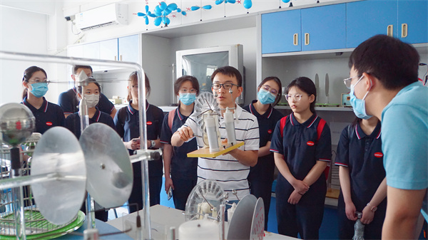 ②烈日高悬的正午时,瑞安楼内青少年科普物理实验室留下的少年们充满求知欲的脚步。一场关于物理真知的交流探讨正如火如荼地进行着。