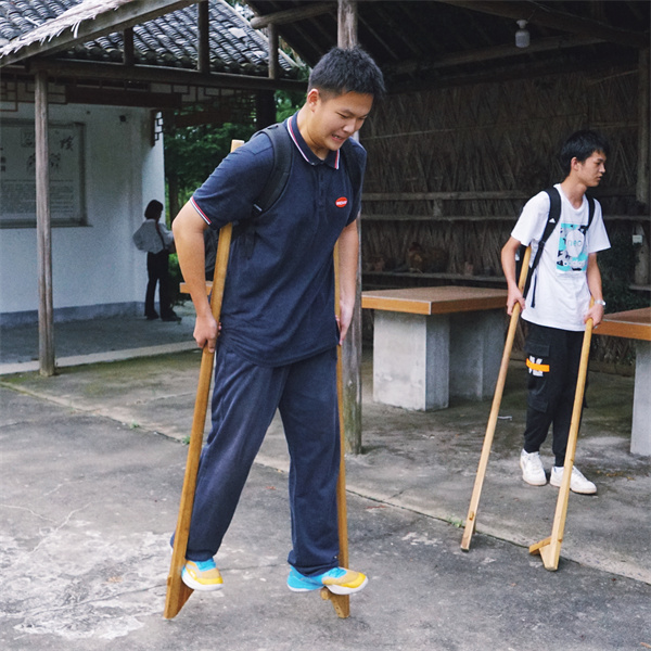 ①叮叮当当的铁环,嘟嘟咚咚的高跷,在石板路上留下了欢快的歌。正如陶行知先生所说,我们应该德智体美劳全面发展,这两门可以说是童年快乐源泉,亦或是强身健体的必修课。踩高跷和滚铁环,看上去简简单单的游戏,实操起来发现还是技术活。先说踩高跷吧,你得把两根高跷紧靠在你的肩膀后,脚一踩上去就不能停留太久,必须马上采取行动,不然可得摔着了。一步一步自己摸索摸索,才能相对平稳的走上几步,这便是传统文化的精华之一了——从摸索到精通。滚铁环就跟不必说,你不花点心思还不能控制住环的轨迹,只能跟着它无头苍蝇似的乱跑,我们大家都摸索着,不过还是快乐盖过了摸索的脚步,大家都不约而同地追着铁环跑了起来,石板路上回荡着清脆的叮咚声。