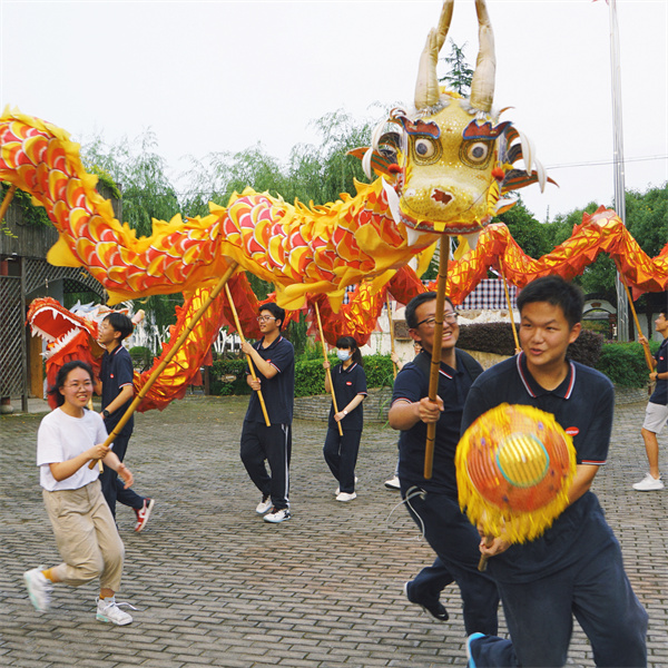 ②舞龙作为中国最震撼,最具代表性的传统文化之一,我们在此次研学活动中有幸参与舞龙活动。各色四龙齐飞,随着龙珠的舞动上下腾飞,活如真龙出世,惊天动地。一人举珠,其余四五人手举长龙,在宽阔,留下几代人愉快回忆的石板路上来回游走,欢快的笑声不绝于耳,鼓声,脚步声打着伴奏,游龙随风舞动,这一承载着千年的舞龙文化在今天又一次在朝气蓬勃的我们身上散发出了鲜活的生命气息。希望这一珍贵的传统文化能永远传承下去,像长江一样川流不息。
