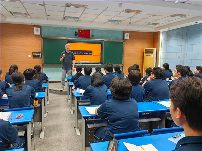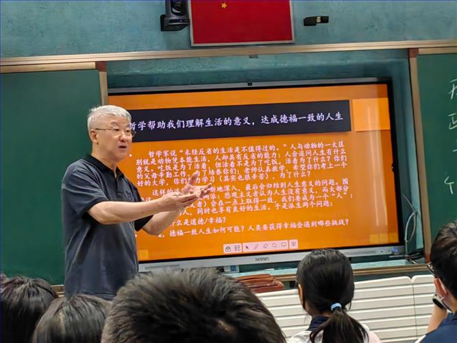 9月18日,我校2026届文科班特色拓展课“智慧人生”人文课程正式开课。课程很荣幸地邀请到了华东师范大学哲学系资深教授高瑞泉及他的团队老师们。第一堂课在“年轻人为什么要学一点哲学”的问题中开启。高教授侃侃而谈,与在座学生一起聊了聊哲学课在各个国家的开设情况,谈到了古希腊先哲苏格拉底和东方圣贤孔子,启发学生哲学是一门追求智慧的学科,是一门讲道理的学科,它探讨的是人生的终极问题。过程中他还援引了身边的一些具体实例,如2020年上海市春、秋两季高考的作文题都涉及哲学思想,学哲学能锻炼思维,开阔见识,开启智慧,以此来回答”年轻人为什么要学一点哲学“的问题。哲学既不神秘也不是心灵鸡汤,它和我们的日常生活息息相关。