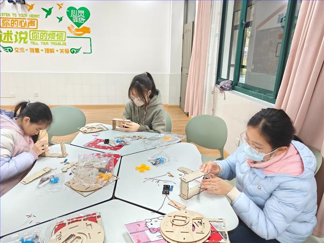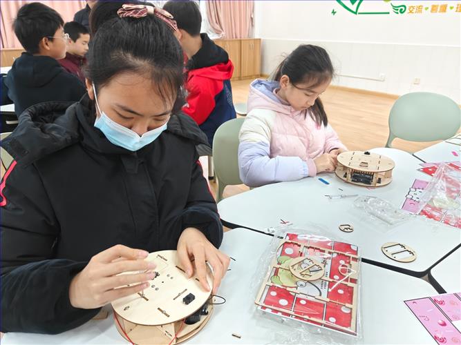同学们都全神贯注的操作着手中的每一个零件,了解其中的原理,并在遇到问题的时候会和同小组的同学一起讨论,以及询问老师,充分调动了学生之间的合作与交流。