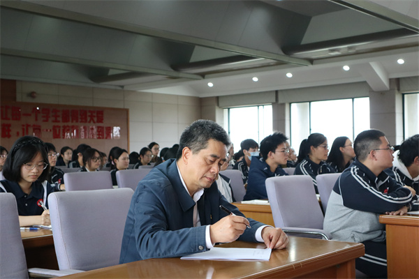 2024年11月1日,我校在春韵楼406举行了2026届学生青年党校开班仪式。陈云纪念馆党委委员编研部主任房中博士、学校党总支书记吴东林、党总支副书记谢建妹、教务处主任高二年级分管领导朱城、政教处主任王志刚,参加了开班仪式。会议由青年党校学生高二14班乃皮赛同学主持。