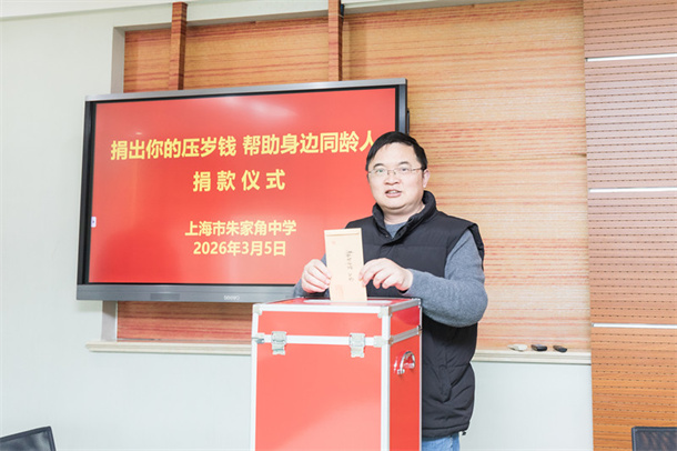 仪式伊始,团委副书记盛心怡发表倡议。她以真挚的话语,向全体同学发出号召:“压岁钱承载着长辈的关爱与期许,它不仅是一份祝福,更可以成为传递温暖的桥梁。当我们衣食无忧、快乐成长时,身边还有许多同龄人面临困境,需要我们伸出援手。希望同学们能捐出自己的压岁钱,用小小的善举,为困境中的伙伴送去希望与温暖,让爱心在校园中传递,让善意在行动中绽放。”倡议言辞恳切,点燃了大家奉献爱心的热情。