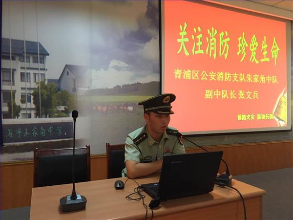 军训期间,朱家角消防中队副队长张文兵教官还给同学们做了《关注消防珍爱生命》的主题讲座。张教官从火灾的危害、如何避免火灾、火灾中如何逃生等方面向同学们做了详细介绍。通过讲座,同学们深刻认识到消防安全的重要性,对消防官兵用生命来保护人民的财产安全,却不求回报的无私奉献、任劳任怨的精神深表佩服。