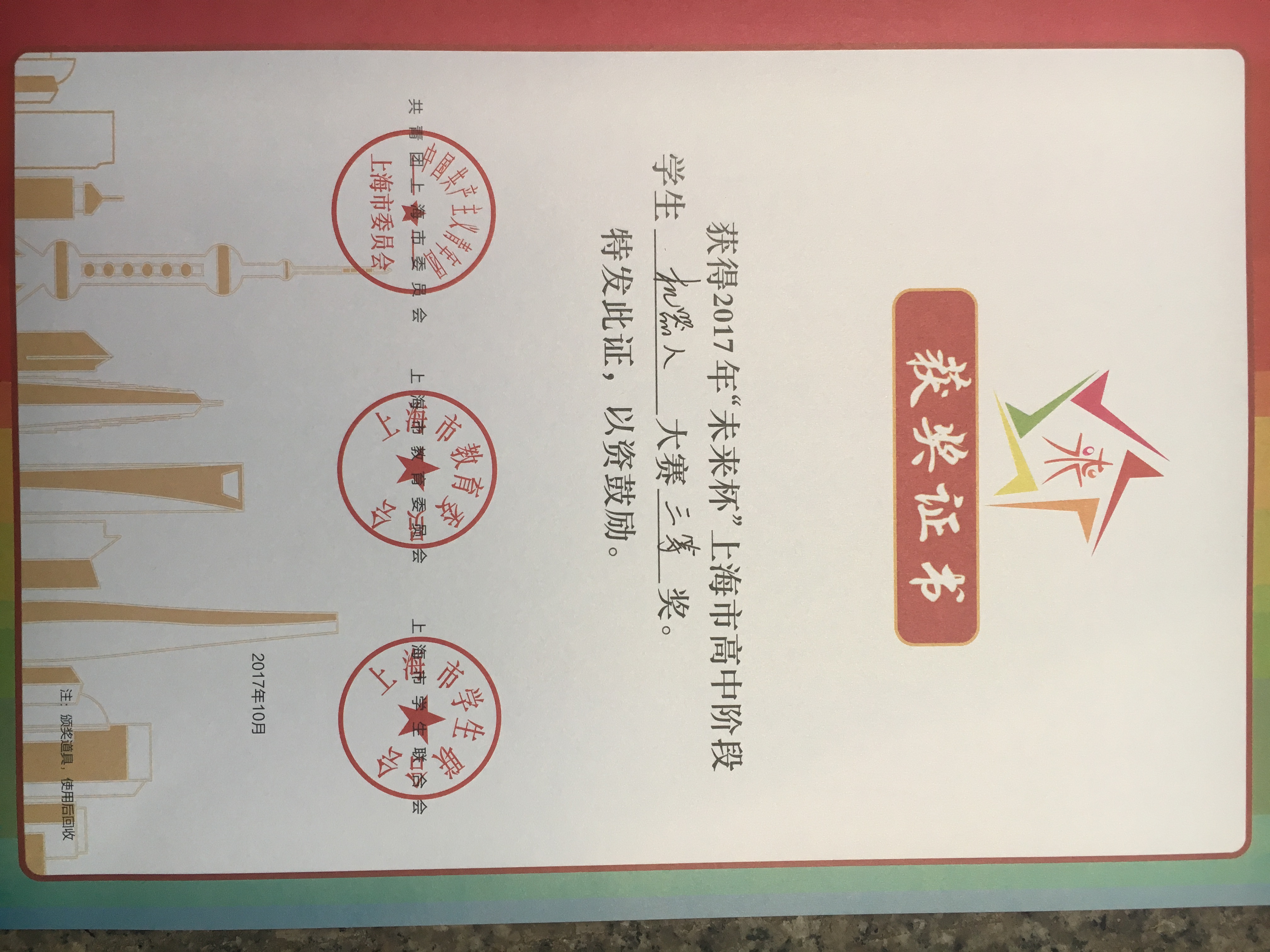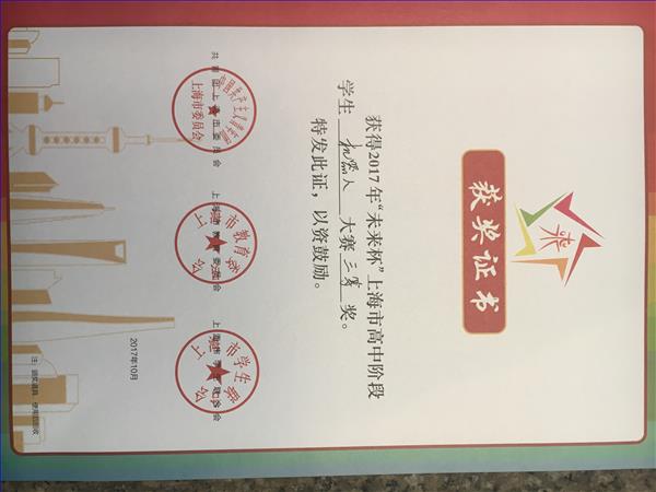 经过上午和下午两个半场5个小时的激烈角逐,张鹏宇、曹哲凯所在的朱家角中学2队获得了三等奖的好成绩。