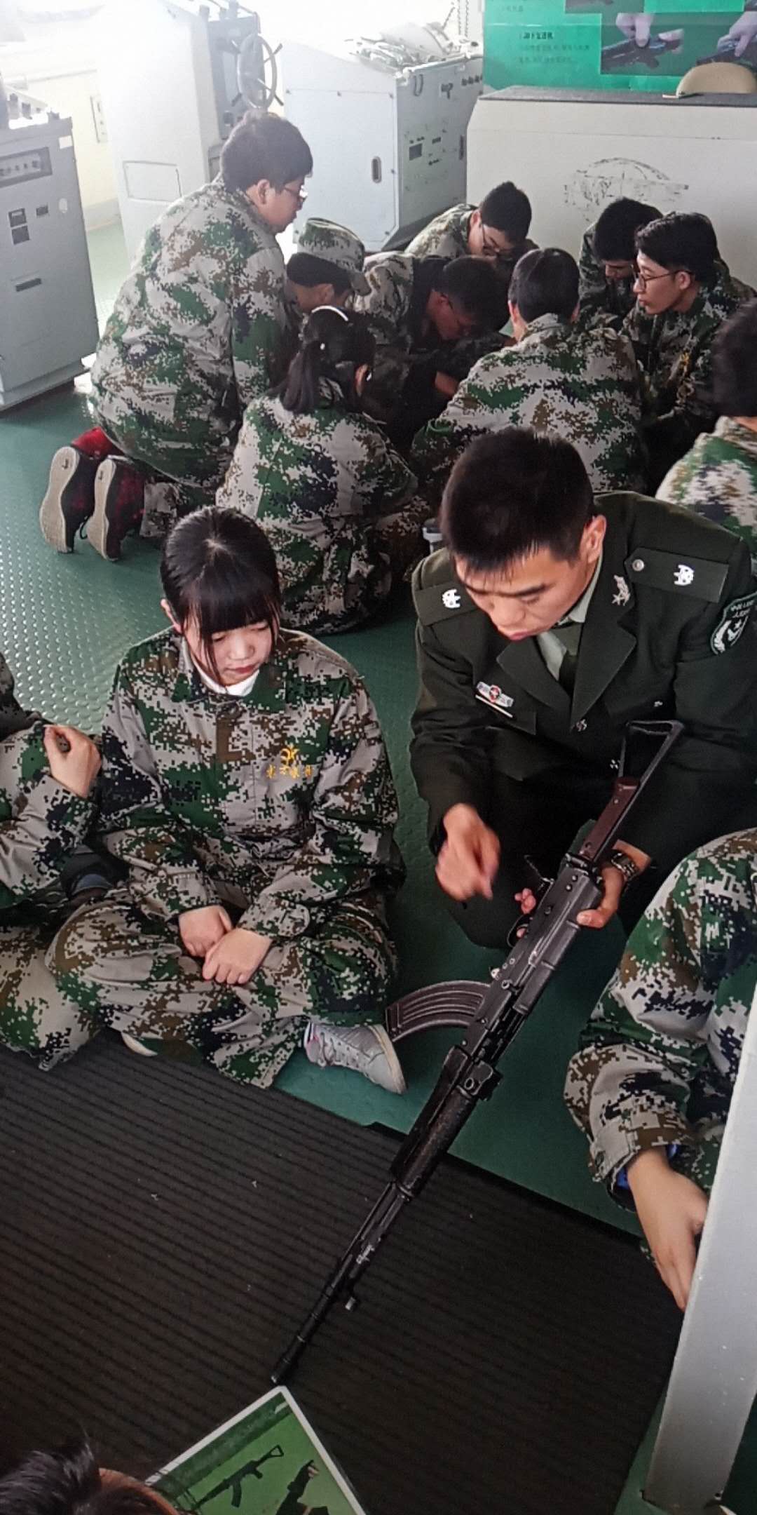 下午的“军事天地1”为同学们安排了参观中国兵器博览馆、纪念建军90周年专题展览以及分解结合枪械的学习活动。在了解了中国的国防历史之后,同学还进入到潜水艇机舱内聆听教官进行轻型武器讲解、演示步枪拆卸过程,很多同学在军训日记中都表达了对“第一次摸到枪”的激动心情。