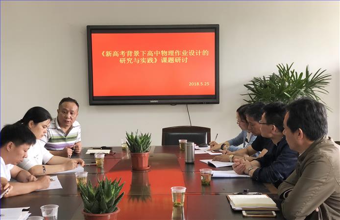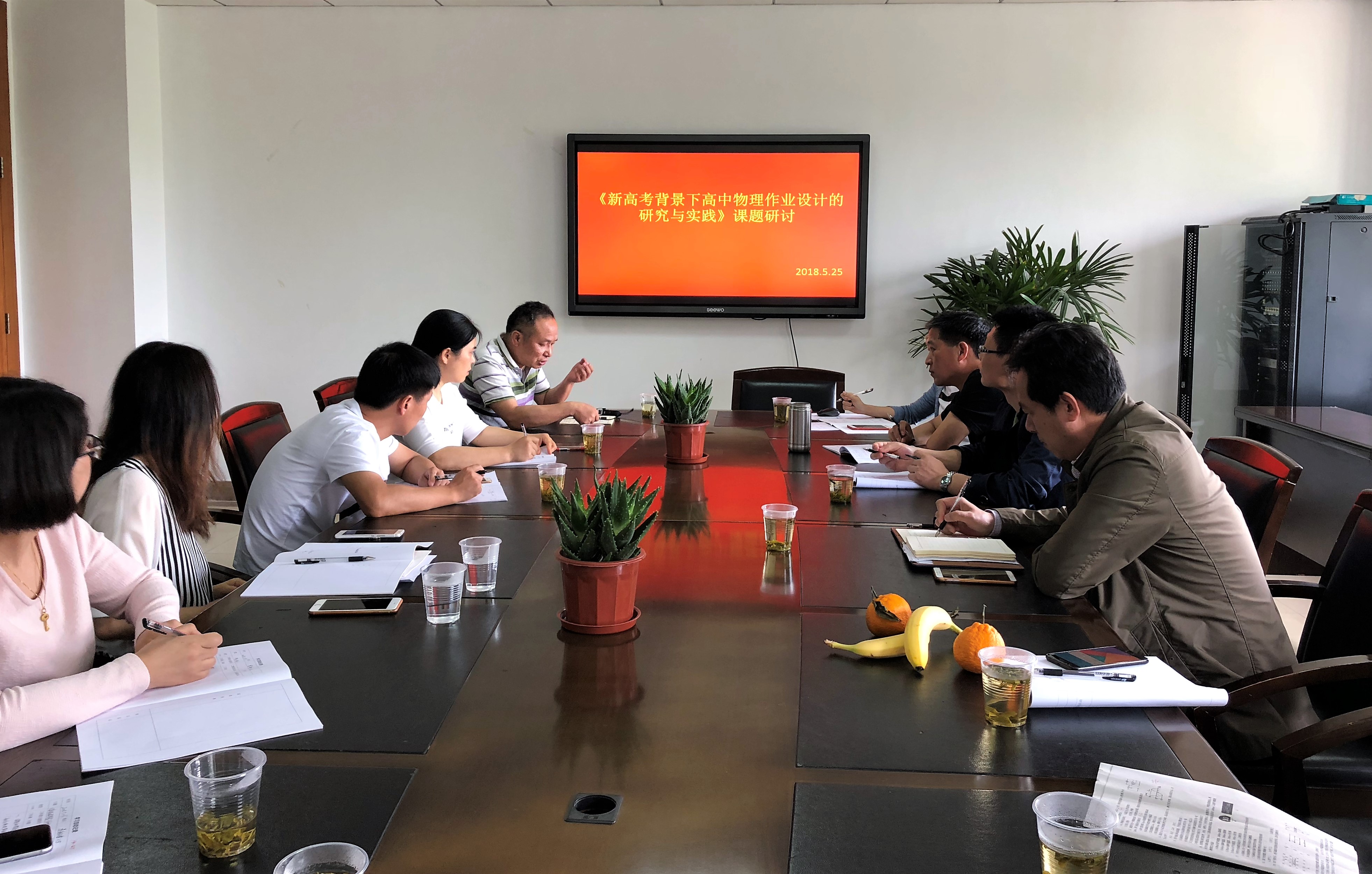 2018年5月25日上午8点,我校物理组课题成员在春韵楼215室围绕促进学生的深度学习展开研讨,本次研讨会还邀请了校长蒋伟勇老师、物理教研员陈杰老师参加。物理组课题《新高考背景下高中物理作业设计的研究与实践》是学校《基于深度学习的课堂教学策略研究》实验项目下的一个分项目,本次研讨会是围绕这个课题开展讨论交流。