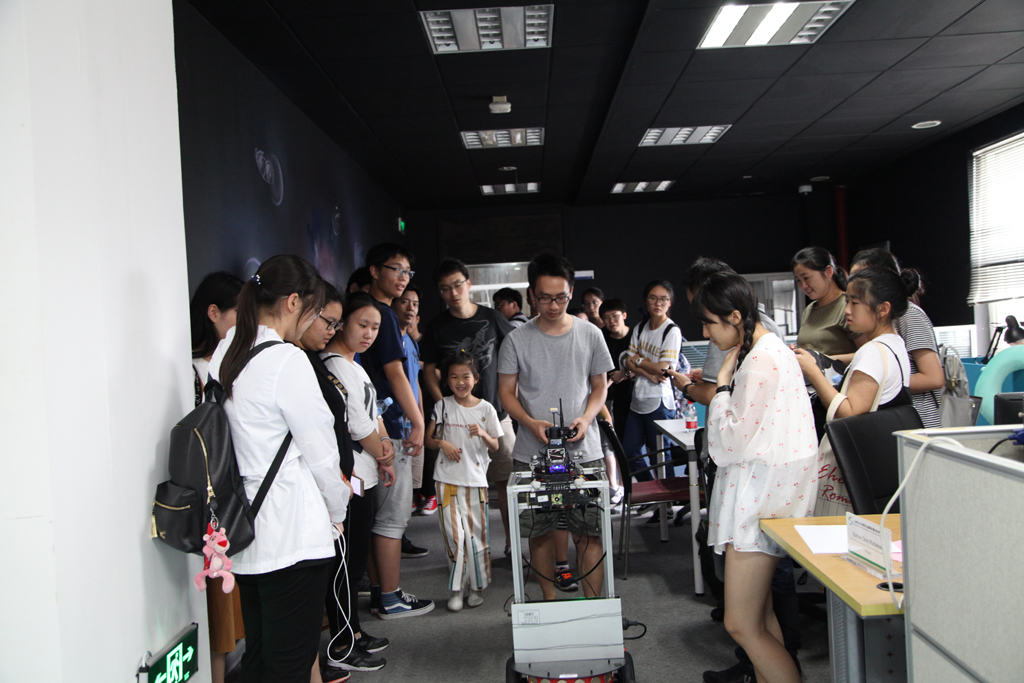 下午,同学们来到上海交通大学上海市北斗导航与位置服务重点实验室讲座教室,实验室的刘强博士就卫星导航和室内定位技术进行了精彩的讲座,介绍了中国的专家们在美国的技术垄断,欧洲的排斥下,独立自主研发北斗卫星导航系统的历程,目前我国已经建成了覆盖亚太地区的导航卫星网络,并且将会在2018年和2019年预计每年发射15颗以上的卫星,在2020年建成世界上第三个覆盖全球的独立自主的卫星导航系统,迎来了同学们充满自豪的掌声。接下来,王玉泽博士为同学们介绍了最先进的室内定位技术,介绍了如何将卫星的触角延伸进室内,在平时的生活中发挥重大的作用,并且为同学们展示了多种室内定位技术的应用,拓展的室内地图构建技术、物联网应用开拓了同学们的创新思路,同学们还在王博士的带领下参观了实验室,现场体会了高校实验室的科研环境。随后是交大实验室开放环节,自由参观交流,领略科研的乐趣。实验室里有设计更精致的机器人,还有北斗卫星当行设置系统硬件等,学生也看的不亦乐乎。